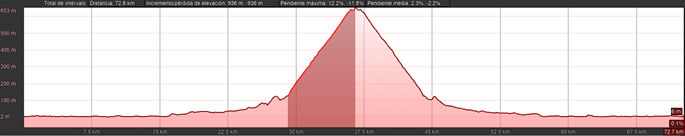 7 km 7,4%, los primeros 500 m al 9% |