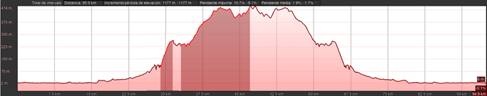 dos tachuelas, luego 2,5 km al 6,1% máxima 11% |