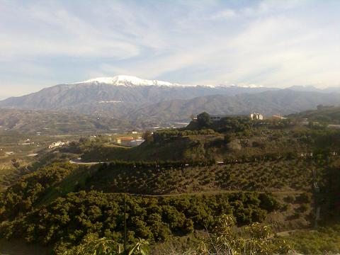 Coronaron en la pista del helicóptero en 1:20 h, tiempo discreto. Esperaban encontrar el bar del puente abierto para desayunar, pero como no fue así llegaron a Venta Baja. La Maroma volvía a estar nevada (la foto se tiró desde Iznate).
